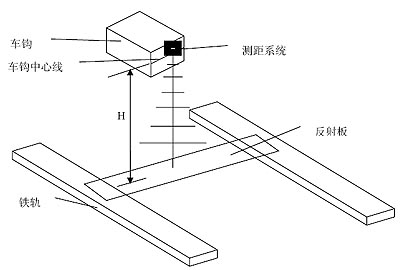 测量系统采用超声波传感器,自车钩中心线向下竖直发射超声波,并由放置在铁轨面的的薄板反射回来,传感器接收到回波,由于光波在空气中的传播速度一定,通过计时器所计得的时间即可算出车钩的高度。图1 为测距原理的示意图。