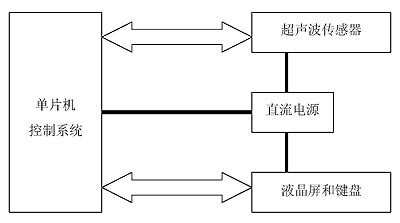 硬件系统包括:单片机控制系统、超声波传感器、键盘和显示电路以及直流电源部分。其组成结构见图2。