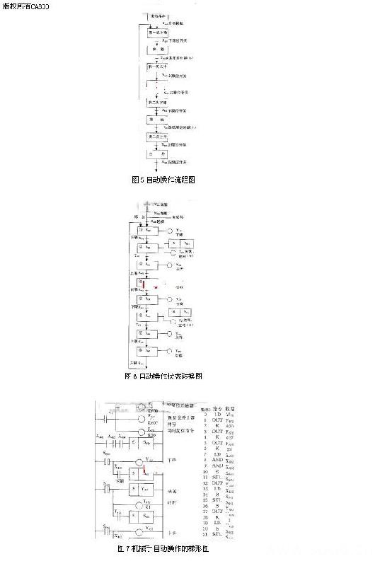 机械手自动操作流程图如图5所示。状态转换图如图6所示。梯形图如图7所示。