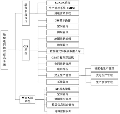 ![]() 图一 输配电网地理信息系统功能框架示意图
