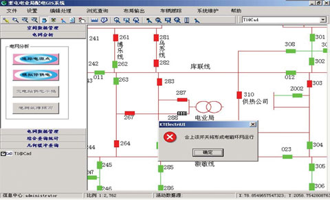 4. 主要功能 GIS 系统主界面框架 提供一个统一的界面对基础地形图、输电网地理图、配电网地理图、电网联络图、线路单线图、变电站一次接线图、设备资料图纸等不同数据源对象进行管理,根据不同用户分配不同的图形数据及对应的操作权限界面,该框架是集成所有业务组件的宿主程序;提供 GIS 的基本操作、各种空间查询功能、图层管理、各种专题图制作、布局输出打印等功能。 配电网运行模拟分析 可以进行停 / 供电分析,电源点追踪,线路故障分析,变电站供电半径分析这样的专业 GIS 分析应用;在停 / 供电分析时,若出现电磁环网,则引发电磁环网警告,提示操作;停供电分析,可以查询分析出受到影响的用电用户;
