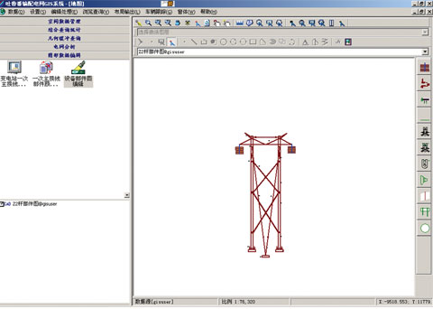 图形数据编辑 地图编辑时提供多种方法,如端点、线段等方法进行捕捉点,线,面图元要素,便于编辑图元要素选定某要素;另外系统提供许多的方便的专业编辑工具,如线路打断,增加、删除节点,节点移位,属性数据的特殊批量编辑等,方便电网数据的更新维护工作。 变电站所一次主接线、电网示意图的编辑,包括各种电气元件的增加、删除、元器件联结关系的改变及元件定位的合法性判断等,支持动态的检测电网模型图的拓扑关系;电气元器件符号采用行业标准符号。 系统支持用户根据各类设备的工程图纸资料进行分类,关联资料之间采用查询树的层次方式,逐层查询,方便检索图纸数据。