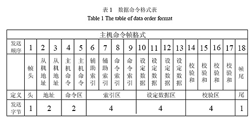 EDS1000 系列变频器的串行通讯为异步半双工的方式,使用字节奇偶校验。PLC 为主机,变频器为从机,系统电码的传输由主机控制,主机不断发出某个地址的电码给从机,等待从机的响应。主机最多能带31 个从机,在有中继器的情况下,可以增加到126 个从机,也就是从机的地址最多可以设定到126。通讯时,传输的默认格式和传输速率为:8-N-1,9600bps。传输的数据命令帧格式表1 所示。