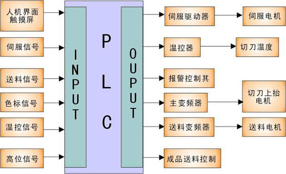 色标、温控、到位信号,做为传感元气件,负责时间的判断与控制信号的发出,使个执行件之间确立逻辑关系。