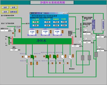 流程图为操作员主要操作监视画面;流程图部分显示了该系统所需的设备以及相关设备的状态和相关的测点。
