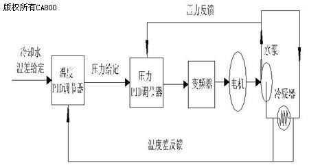 考滤到大中型中央空调循环水系统中温度与水压对冷冻水、冷却水带走热量的影响,因此本系统采用温度与水压为变量双闭环控制。
