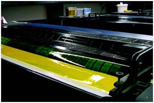 今天,最常见的印刷机都采用柔版印刷工艺。 柔版印刷是一种回转印刷方法,它通过凸起的图案表面在各种承印物上印制图案。即通过橡胶版或感光树脂版非印刷区域的撤出和降低,在印版上生成所要印刷的图案。 印版与直径各不相同的回转圆筒相连以获得各种尺寸的图案。油墨则是通过一个称为网纹辊的具有网状结构的油墨计量辊转移到印版表面。通常,喷墨装置与刮刀协同工作,以便为网纹辊供应油墨。 上述系统操作可以针对每种印刷颜色在印刷机上重复。目前,一台印刷机上的平均印刷站的数目为10个,卷筒纸的宽度为 6 到 136 英寸。