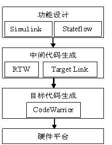 在进行向标准 C代码的转换的过程中,可以根据需要加入符合OSEK规范的嵌入式实时操作系统。在代码生产阶段使用的主要工具是CodeWarrior。通过使用CodeWarrior提供的编译器、调试器等工具,完成从标准C代码向目标硬件平台上的产品代码的转换工作。下图表示了车控电子产品的代码生成过程。