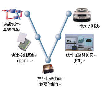 汽车车控电子产品软件开发流程是“V”形开发流程。“V”形开发流程分为五个阶段,即功能设计、原型仿真、代码生成、硬件在回路仿真-HIL、标定。