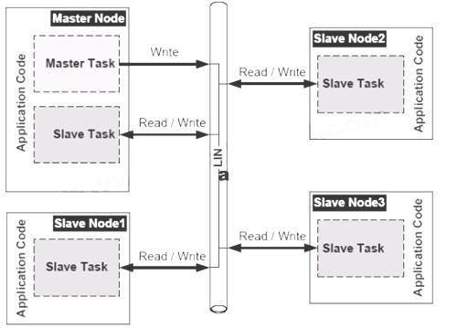 LIN(Local Interconnect Network) Bus是一种串行通讯总线,它有效地支持汽车应用中分布式机械电子节点的控制。它的使用范围是带单主机节点和一组从机节点的多点总线,其系统结构如图 1-1所示。LIN Bus系统主要特性有: