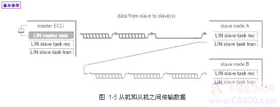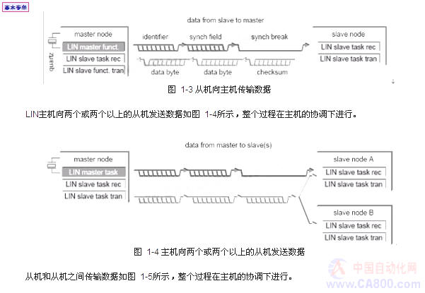 LIN从机向主机传输数据示如图 1-3所示,整个过程在主机的协调下进行。