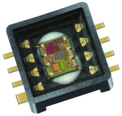 塑料外壳有8个连接针。在传感器芯片结合并利用金线连接之后,芯片利用硅胶进行覆盖。待测量的环境气体压力通过硅胶传送到传感器表面。此外,它可保护芯片免受环境影响。这种封装用于自动PCB装置,比传统封装更具成本优势。