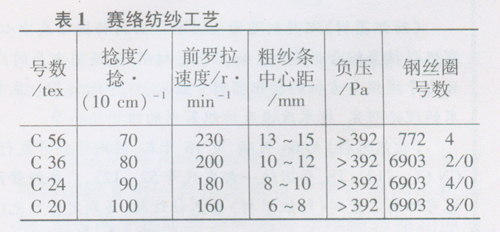 | 2相关工艺参数的设计 2.1 牵伸倍数 赛络纺重量牵伸的计算方法与传统计算方法相同。在选择机械牵伸时,因两根喂人粗纱中间有一定间距,张力牵伸较大,牵伸效率应根据不同的原料进行选择。 2.2捻系数 选择赛络纱捻系数时,应高于传统环锭纱捻系数的15%~20%。因赛络纺纱单根须条上的捻度较低,纤维间抱合力差,易出现单根断头现象。因此,设计赛络纺纱捻系数时应偏大,但选择过大(接近临界捻度),会造成成纱手感僵硬,强力降低,所以要求一般不超过同类产品捻系数的20%。 2.3粗纱条间距 喂人粗纱条中心距大小直接关系到成纱效果和设计捻度向两须条的传递,影响到断头根数,因此是一个关键参数。当设计捻度一定时,粗纱条中心距大,赛络纺纱效果好。但间距过大,捻度向单根须条传递减少,易出现单根须条断头。在一落纱中叶子板距罗拉握持点距离由大逐渐变小,则赛络纺纱中须条汇聚点距前罗拉距离也逐渐变小,汇聚点处两须条夹角增大,影响捻度传递效果。因此,选择好粗纱条间距是关键,使用可凋式双喂人装置可以有效解决这一问题。 2.4吸棉口负压 细纱机车头吸棉笛管吸棉口负压应大于392Pa,单纺助接器借助于吸棉口的负压,使前罗拉钳口处的须条吸入吸棉口时运动轨迹改变,从前钳口经导须台后到吸棉口。如果吸棉口负压小,导须台尾端吸人点对须条的吸力可能小于导须台面对须条的摩擦力,纤维运动受阻,发生堵塞现象。实践表明,吸棉口负压大于392 Pa时有利于断裂须条的收集。 2.5钢丝圈的选择 由于赛络纱的设计捻系数比同号普梳环锭纱大20%,左右,因此钢丝圈应偏重掌握1号~2号。 2.6常用工艺配置 赛络纺纱常用工艺见表1。 ![]() 3操作方法 安装赛络纺控制装置后,传统的操作方法有所改变。 (1)粗纱断裂后接头。当粗纱单纺卡断器将断裂粗纱控制后,在两根粗纱全部断裂引头时,将两根粗纱直接喂入双喂人装置,进入牵伸区,在单纺断头助接器处接头,使其先正常纺纱以节省时问,然后再将两根粗纱分别放入定位圈和探杆吊环中。在正常纺纱过程中换粗纱包接头时,应先将相邻的另一根粗纱从定位圈中取出后再包接粗纱,等包接头后的粗纱拉紧时再将两根粗纱分别放入定位圈中。 (2)细纱接头。纺纱过程中如果罗拉钳口处两根须条全部断裂,应取纱管,观察是否卷绕有单股纱,有则将其退绕至正常纱处。拔管、挂钢圈动作与传统动作一致,卡头时所留纱稍长,将食指指肚靠近单纺断头助接器的集棉口处并向上微挑,让纱头与集棉口的纤维须条相触,然后迅速将手松开。不能将纱头靠近罗拉钳口处进行接头。 4成纱质量 在安装赛络纺单纱控制装置后,赛络纺纱生产正常,控制效果较好,纺制的赛络纱成纱质量较好,粗节、细节、棉结减少,条干改善,成纱毛羽减少。成纱质量见表2。 ![]() 5 结束语 纺纱实践表明,对细纱机的传动稍加改动和调整后,安装使用赛络纺控制装置是可行的,对赛络纺单纱能进行有效控制。由于赛络纺单纺助接器对吸棉负压的要求较高,有些采用低速吸棉风机的细纱机(电机功率1.5 kW以下,风叶直径370 mm以下)就难以直接使用赛络纺控制装置,但经改造后仍能配用。使用赛络纺控制装置后所生产的赛络纱质量有保证,且赛络纱本身具有独特的风格,能广泛应用于免上浆经纱、起绒用纱及针织用纱等,开发出新颖独特的面料。 |