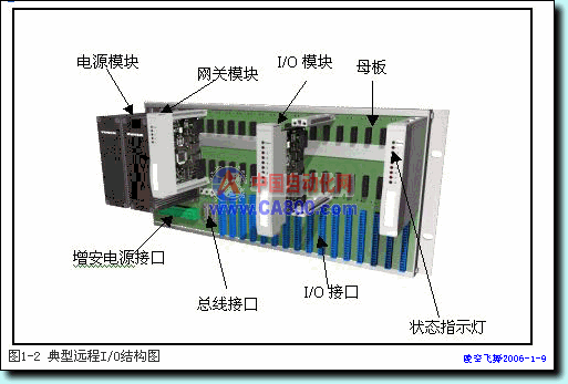 从上个世纪七八十年代开始,普遍采用安全栅使控制系统满足防爆要求,这种方法一直沿用至今。但使用安全栅,无形中使控制系统的结构变的复杂且增加了施工的难度。从上个世纪九十年代中期开始,世界上各大防爆专业厂商纷纷研制将安全栅与控制器的I/O模块集成在一起的产品,从而简化系统的结构。一些具备防爆功能的远程I/O产品相继问世。为了与尽量多的控制系统相匹配,这些厂家制造的产品都采用了流行的现场总线作为与控制器通讯的介质。并且为了能在危险区中发挥远程I/O的优势,新型的远程I/O产品通过采取一系列的防爆措施使得其自身可以直接安装在危险区中。图1-2所示为一种典型的远程I/O产品。
