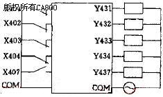 的判据 X407──计数器复位脉冲 Y431~Y434──四台待测