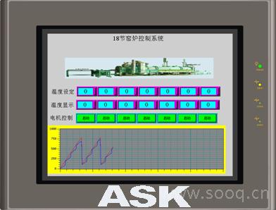 因ASK触摸屏8.0寸以上的内置了配方功能、掉电保持功能以及自带有MODBUS485通讯口,利用ASK触摸屏内置的配方功能,可以让用户预先设定好生产不同产品的温度曲线配方;内置掉电保持功能,可对当前报警进行实时记录及显示,并可查询历史故障记录及故障解除时间。这就只需要温控表带有通讯功能就0K了.本案例中采用的是我司代理的一款TAIE温控表.系统框架图如下:
