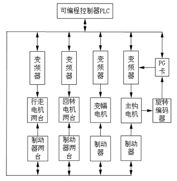本系统将塔式起重机控制系统由继电器控制改为PLC控制,四大机构调速均采用变频调速.塔式起重机控制系统的系统总框图如图1所示[5,8,9>.