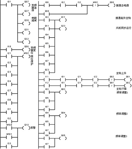 在本系统中,PLC程序设计的主要任务是接受外部开关信号(按钮、联动控制台继电器)的输入,判断当前的系统状态以及输出信号去控制接触器等器件,以完成相应的控制任务。