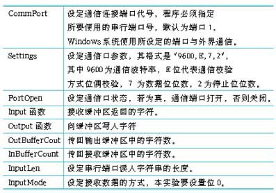 ![]() 其中,@为前导字符,表示开始;设备号为00-31(本例限设到10),共可设置32个站号,用来识别所连接的PLC,可通过PLC的DM6653的低8位来设定,默认站号为00;命令码为CPMIA小型PLC规定的对其操作的命令代码;正文为需要读或写的数据地址以及数据;FCS为帧校验代码,用于及时发现通信过程中的错误,以备处理;*和CR表示命令结束[2>。 命令帧为PC机传向PLC的帧格式,响应帧为PLC传向PC机的帧格式,其命令帧与响应帧中的各个部分除数据区不同外,其他部分的含义是相同的。 2.3 MSComm控件介绍 表1 MSComm控件属性 ![]() 2 通信程序设计 本系统以PC对基于PLC的交通灯控制系统的监控为例,在上位机与PLC正常通信的前提下,设计如下界面。窗体的内容主要包括,四大区:端口、站号选择区,设定时间输入区,监控显示区,控制按纽区。从站号选择区选择不同站号即不同PLC,实现对多个PLC的实时监控。 3.1 串口初始化程序 If en <> True Then 3.2 计算机与PLC通信的VB程序 ![]() Dim OutputStr As String Dim InString As String Dim ReturnStr As String Dim EndString As String Dim FCSString As String Dim ReturnFCSString As String erCount=0 OutputStr=InputStr+FCS(InputStr)+“*” If en=True Then =OutputStr+Chr$(13)’按照PLC帧格式输出 End If Do DoEvents Loop Until erCount >=Num2’返回帧的长度 InString= EndString=Mid$(InString,6,2)’取返回帧的响应码 If EndString <> “00”Then ReadData=“Error” Exit Function End If EndString=Mid$(InString,1,Len(InString)-4) ReturnFCSString=Mid$(InString, Len(InString) -3,2)’取返回帧校验码 FCSString=FCS(EndString) If FCSString <> ReturnFCSString Then ReadData=“Error” Exit Function End If If Len(InString)>=Num2 Then ReturnStr=Mid$(InString, Len(InString)-Num1-3, Num1)’取返回帧的数据,其度为Num1 ReadData = ReturnStr End If End Function 4 结束语 |