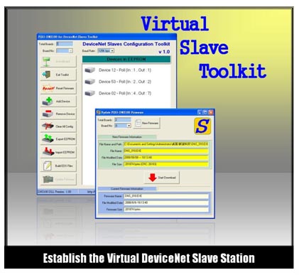 搭配免费的图形化工具软件( DNS Toolkit )让您能轻易规划虚拟DeviceNet Slave工作站,工具中提供多种方便的管理功能如新增及移除设备或是变更鲍率,它不仅能动态产生EDS档案更能汇出及汇入您的设定档,方便移植设定档至新的板卡上省去重新设定的工作,当您在为客户开发应用程序时,这些功能可以帮助您减少程序开发的时间及成本。