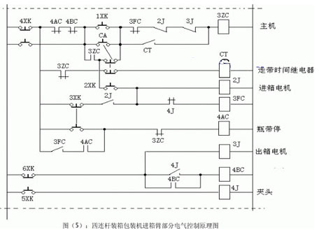 ![]() 4.按动相应的按钮,分别控制进箱电机、出箱电机、瓶电机的开、停。关机以后将开关位置置于“关”。1SA和2SA分别控制“出箱臂”和“瓶定位”,10SA,15SA控制“导向”和“变距”。 5.在上述“动作”都已正确时,将“手动”转为“自动”,按下“整机启动”按钮,调试PLC逻辑程序。进行自动装箱包装操作。 六、结束语 经PLC改造后的四连杆装箱包装机电气控制系统,外观上;物理接线量大大减少,控制柜体积缩小,柜内的原器件排列有序。运行效果上;经设备运行证明,自动化程度大大优于原系统控制效果。控制可靠性大大提高,减轻了现场操作人员的劳动强度。由于系统在整个包装流水线和包装机设备的危险位置安装了光电位置检测开关,提高了操作的安全性。总体上提高了企业的经济效益。 |