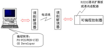 附注: 1.FX2N-232-BD与MODEM之间以及电脑与MODEM之间都是用MODEM本身自带的线(直通线)进行连接。 2.在实际应用中,有些MODEM只能在GX Developer软件中实现上述远程维护功能。比如TP-Link的TM-EC5658V。 3.FX-PCS/WIN软件当运行在Windows NT4.0、Windows2000或者Windows XP环境中时不能使用以上的远程维护功能。