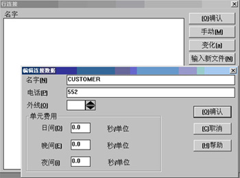 4. 在出现的“行连接”对话框中点击“输入新文件”,在随后出现的“编辑连接数据”对话框中设置好“名字”和“电话”并确认。