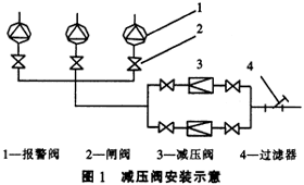 总之,报警阀前设置环状供水管道的系统,如须设置减压阀时,宜在环状管道的两侧单独设置,一般可不设备用减压阀。(图1中过滤器的布置位置及方向与图2中止回阀的位置均不合理,合理布置见图3)当然在管理条件较好,能够保证减压阀组定期轮换工作的情况下,也可设备用减压阀。需要指出的是不得绕减压阀设旁通道。