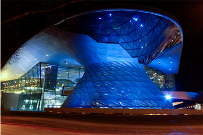 宝马品牌沿袭了高贵的德国血统,其名下的地标建筑——宝马世界也同样融入了这样的血液。位于宝马总部与奥林匹克公园之间,整栋建筑如同一个巨大的光环。 它同样极富创意的 从各个层面全面地诠释着 BMW 的品牌概念:即传统与创新, 情感和理智,动力和美学, 独特与开放的完美结合,这里将是宝马同客户、朋友、同行及参观者进行心与心交流, 全新体验 BMW 魅力的地方。