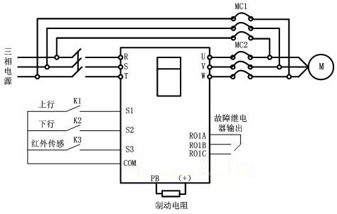 ·为消耗下行,或者制动过程产生的多余能量,需在变频器上加装制动电阻。
