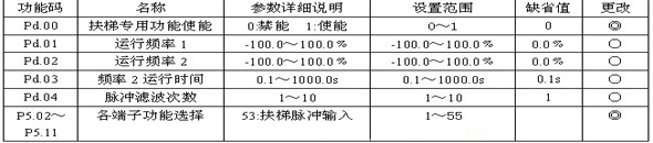 1、Pd.00:设置为1,启动扶梯专用功能;