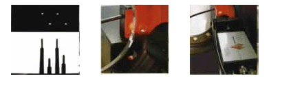 实际图像处理系统针对每个图像使用32个测量射束:每个测量射束生成一份有关正被查找的孔点的非接触式样本,将这些孔点进行组合,以便给出一个“最佳配合圆”。这样可消除因冷却液乳胶的细液滴造成的,或者因剩余切屑造成的任何不良测量。此外,还可确定孔的圆度,从而可察觉工具的早期磨损。