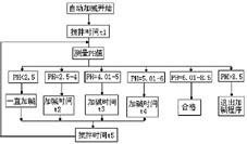 废水中和处理的过程是,当处理池达到给定的水位时,启动压缩机,池中爆气头开始爆气,进行搅拌,混合均匀后(时间长短可以设定),测量池中PH值。如果池中呈酸性,程序控制自动加碱使之中和,使PH值达到6~8.5之间的排放标准。如果PH值大于8.5时从贮水池抽酸性水或将处理池的碱性水抽一部分到贮水池,再从阳床进一部分酸性水,充分混合达到排放标准,启动排放阀排放。图2为自动加碱程序框图。