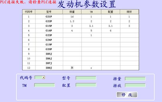 本套系统包含以下几部分,分别为发动机数据记录及其参数设置界面、变速器数据记录及其参数设置界面,出于对系统安全性的保证,对系统做了用户名、密码设置,当用户以管理员身份进入系统的时候,可以对本系统的发动机和变速箱参数进行修改。下面的是发动机的参数设置界面及记录