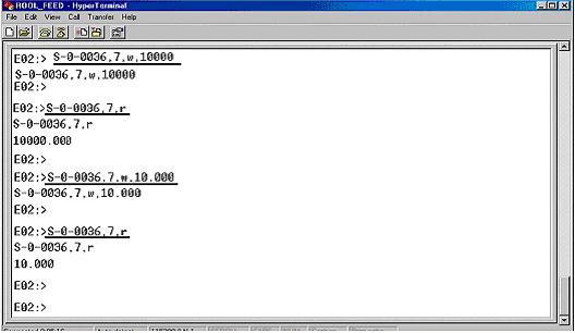 驱动器OPEN后,我们可以修改驱动器中参数。例如我们超级终端读写速度命令值 (S-0-0036)如下: