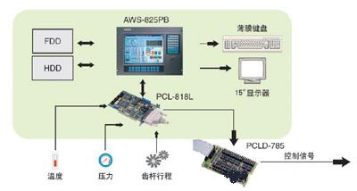 喷油泵实验台微机控制系统是一种典型的集中控制系统。根据以上系统要求,客户在经过多家比较之后,选定了研华公司生产的集键盘、显示器、主机三位一体的工业级工作站AWS-825PB以及相应的多功能DAS卡PCL-818L来组成计算机控制系统。