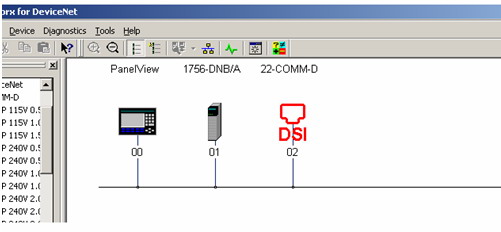 如下图所示,J2改为5X以后,通过RSNetworx对网络进行扫描,结果如下: