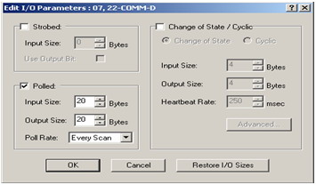 重新设定22-COMM-D的I/O字节数因为每个变频器占用两个I/O字,所以将字节数改为5(变频器数量)*2(每个变频器占用两个I/O字)*2(每个字包含两个字节)=20