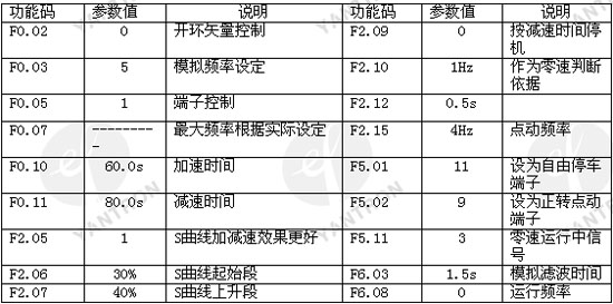 运行方式采用开环矢量控制,具有低频转矩大,运行平稳的特性,运行前先要对电机进行自动参数调谐。