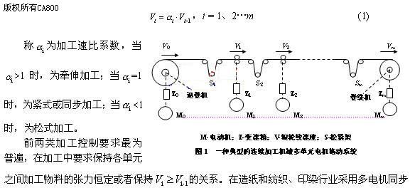 随着集成电路、功率器件制造技术的成熟和成本的不断下降,变频调速技术已开始在造纸、纺织、印染等行业大量使用。在风机、空调上大量采用变频器,节能达40%。纺织机械设备上应用变频调速以后,提高了设备的转速和调速精度,使产品的产量、质量都上了一个新台阶。在纺织或印染联合机将纺织物连续加工的运行过程中,各加工单元的主动辊分别由一台电动机拖动,由于要求各单元进出物料的速度一致,所以要求多单元电气传动系统能“同步”地协调运行。这种要求很普遍,如造纸过程,多级输送带等,这是需要解决的关键问题。如果将网络技术、计算机控制技术和变频技术相结合,应用于多电机同步控制之中,则可充分发挥它们的巨大优势,提高多电机同步系统的控制管理水平和设备运行的经济效率。