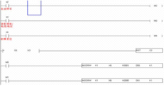 2.用台达PLC专用MODBUS通讯协议读写指令MODRW编写程序方式1(如图1)