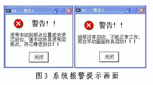 F、完善的报警系统,在操作不当或机械故障时能在屏幕上作出提示,并停机报警。如图3所示。