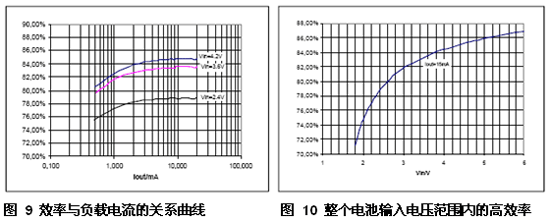 电流感应电压被降至250mV,且过压保护功能被集成到一个采用小型3mm×3mmQFN封装的器件中。其效率曲线如图9和图10所示。