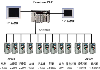 ■控制部分:两台HMI(机头机尾)、ATV31变频器、8路AI、12路40kHz高速计数、CANopen总线。