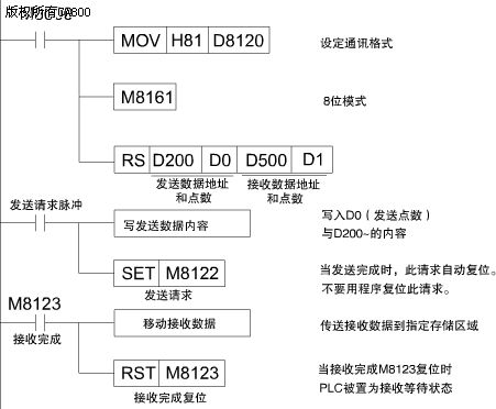 采用三菱FX1N系列PLC的通讯程序实例如下:
