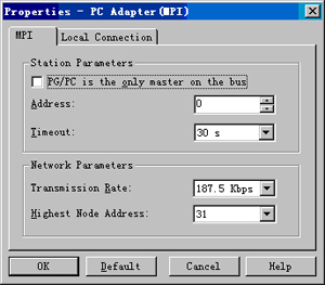 | 目前,三菱电机的人机界面产品主要包括GOT-A900系列和GOT-F900系列两种。 对于GOT-A900系列,在使用之前需要安装OS(包括基本OS、通讯驱动等)。其中的通讯驱动需要根据所连接的对象以及所采用的连接方式选择安装。 以A970GOT为例,应在A970GOT上安装A9GT-RS2串行通讯板,并安装对应的通讯驱动(SIEMENS S7-300/400),且需通过西门子制造的HMI Adapter(6ES7 972-0CA11-0XA0)与西门子S7-300系列PLC进行连接。 1.西门子S7-300系列PLC的设置: 在STEP7软件中按照以下步骤进行设置。 ![]() ① 双击“SIMATIC 300”项。 ![]() ② 双击“Hardware”项。 ![]() ③ 双击“CPU 315-2 DP”一栏。 ![]() ④ 点击“Properties…”按钮,在弹出的对话框中进行如下设置: ![]() ⑤ 在“SIMATIC Manager”窗口的“Options”菜单中选择“Set PG/PC Interface”。 ![]() ⑥ 双击“PC Adapter(MPI)”一栏,并进行如下设置: ![]() ⑦ 选择“Local Connection”选项卡,并进行如下设置: ![]() 2.GOT的设置: 在GOT实用菜单的“SETUP”中设置如下: ![]() 3.西门子HMI Adapter与GOT(A9GT-RS2)接线图如下: ![]() 西门子制造的电缆(6ES7 901-1BF00-0XA0)也可使用。 对于GOT-F900系列(F940GOT,F930GOT),需通过其内置的RS232C口经由西门子制造的HMI Adapter(6ES7 972-0CA11-0XA0)与西门子S7-300系列PLC进行连接。 1. 西门子S7-300系列PLC的设置(同上) 2. GOT的设置: 在GOT的系统画面中设置如下: DST站号(目标站号)根据在S7-300中的设置应设为2。 3. 西门子HMI Adapter与GOT(RS232C口)接线图如下:(同上) ![]() |
