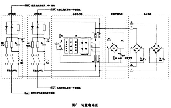显示电路由R4、R5、ZN2、D4组成(详见图2),其中R4、R5为分压电阻,ZN2为换向桥,D4为LED显示灯。