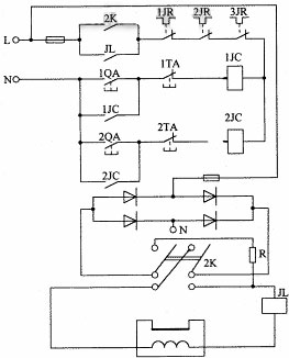 磨床电磁吸盘是一个用来吸牢工件,使工件能被安全加工的一个重要装置。为了防止因故吸盘对工件吸力不足(或失去吸力)而导致工件飞出,造成工件损坏或人身事故,目前生产中所用磨床的电磁吸盘电路采用的是单重保护,即只用一个欠流继电器JL作欠流保护,如图1所示。笔者在实践中发现两个问题:一是当出现欠流故障时,而欠流继电器JL的常开接点JL因故又不能松开时,将失去保护作用,容易出现事故;二是当吸盘线圈出现断线(或接触不良)故障时,没有报警功能,一方面不能引起操作者注意,另一方面维修时一时判断不准。