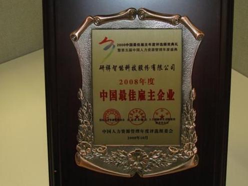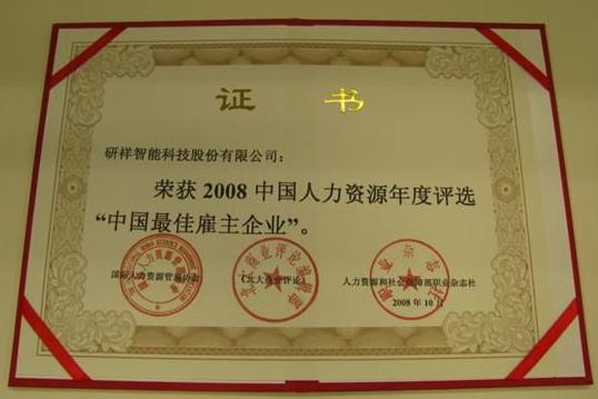 2008年10月25日,第五届中国人力资源管理年度盛典暨2008中国人力资源年度评选颁奖典礼在北京大学百年大讲堂隆重举行。研祥荣获“中国最佳雇主企业奖”。