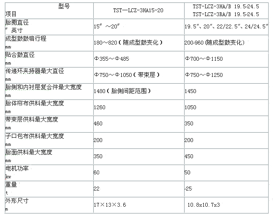 该设备用于全钢丝载重子午线轮胎成型,适用费尔斯通成型工艺和适用倍耐力成型工艺,可为半自动、和全自动、机械成型鼓。采用了人机界面操作和上位机两个系统操作、Q系列PLC、使用三菱伺服电机运动控制系统,伺服可以独立驱动、CC-LINK总线。人机界面操作、多用户管理、配方管理、自动换单、菜单储存、运行状态监测、故障显示、历史纪录查询、报表查询等多元化功能。